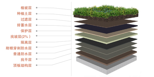 ● 可以起到隔热保温、防水、降低城市热岛效应作用。